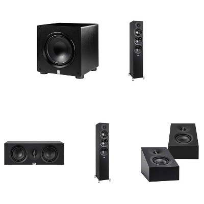 Elac DF53-BK - Debut 3.0 5.25" Floor Speaker - Black (Pair), ELAC DA43-BK Debut 3.0 - DA43-BK Atmos / On Wall speaker, Elac PS500 Subwoofer and Ela...