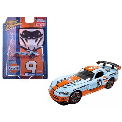 2008 Dodge Viper SRT10 #9 "Gulf Oil" Light Blue and Orange Limited Edition 1/64 Diecast Model car by Johnny Lightning