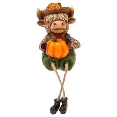 The Lakeside Collection Highland Cow Shelf Sitter Girl With Sunflower Or Boy With Pumpkin -