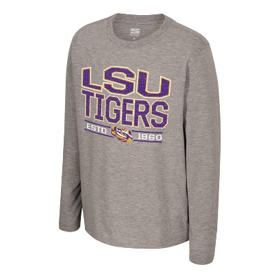 NCAA LSU Tigers Boys' Dual Blend Gray Long-Sleeve T-Shirt