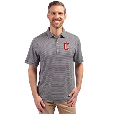 Cleveland Guardians Cutter & Buck Forge Eco Double Stripe Stretch Recycled Mens Polo - Polished/White - Medium