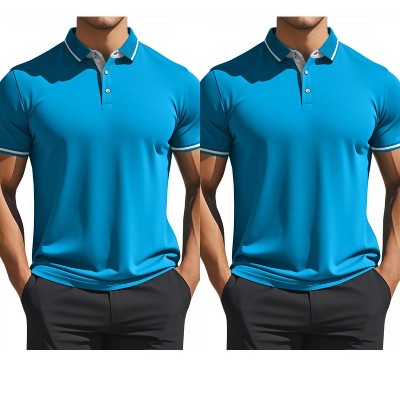 INSPIRE CHIC Men's Striped Knit Chest Pocket Short Sleeve Golf Polo Shirts