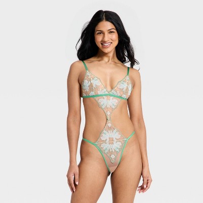 Women's Embroidery Lace Lingerie Bodysuit - Auden™ Green