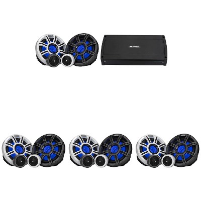Kicker Premium Marine (4 Pair ) 6.5" Component Speaker and Amplifier bundle ( 51MSS654 & 48KXMA8004 )