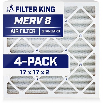 Filter King 17x17x2 Air Filter | 4-PACK | MERV 8 HVAC Pleated A/C Furnace Filters | MADE IN USA | Actual Size: 17 x 17 x 1.75"