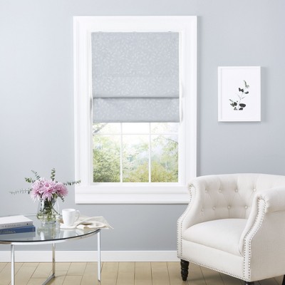 Exclusive Home Bolan Botanical Total Blackout Roman Shade, 27"x 64", Silver