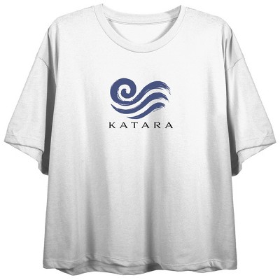 Avatar The Last Airbender Katara, Water tribe Icon on White Short Sleeve Adult Crop T-Shirt