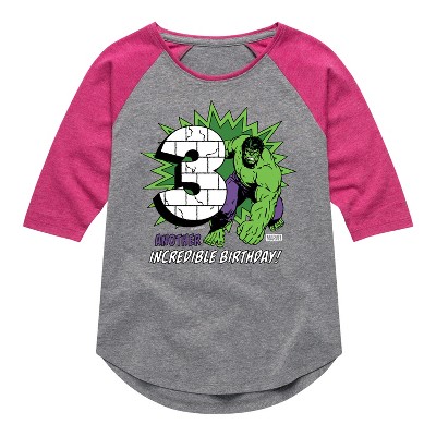 Girls' - Marvel - Hulk Incredible Birthday 3 Shirt Tail Raglan Graphic T-shirt