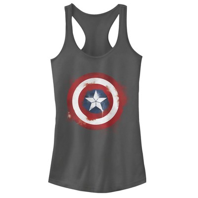 Juniors Womens Marvel Avengers: Endgame Cap Smudged Shield Racerback Tank Top