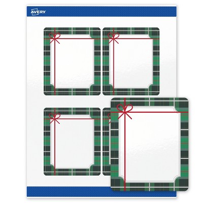 Avery Labels, 4" x 3-1/3", Silver-Green Plaid, Glossy, 40ct