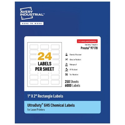 Avery UltraDuty GHS Labels, Waterproof, 1 X 2 Inch Rectangle Printable Labels, for Use with Laser Printers
