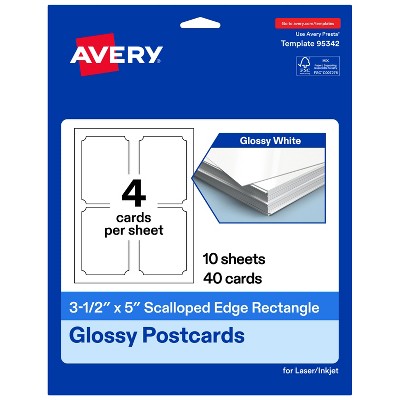 Avery Glossy White Postcards, 3-1/2" x 5" Rectangle Scalloped Edge