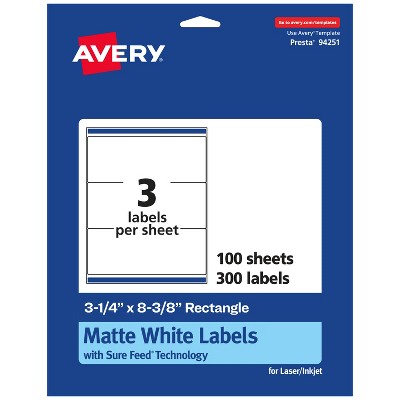 Avery Matte White Rectangle Labels, 3-1/4" x 8-3/8"