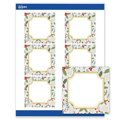 Avery Labels, 3" x 3", Gold-Blue Border Berries, Matte, 60ct