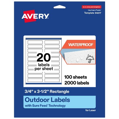 Avery Outdoor Waterproof Labels, 0.75" x 3.5" Rectangle