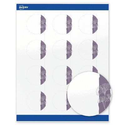 Avery Round Labels, Floral Design, 2" Diameter, 120ct, Glossy, Purple and Silver Gingko Leaves
