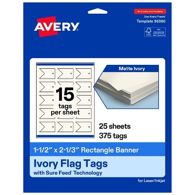 Avery Banner Flag Tags, 1-1/2" x 2-1/3", Matte Ivory, 375 Total