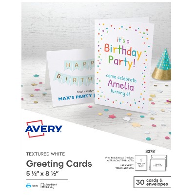 Avery Printable Greeting Cards, Half-Fold, 5.5" x 8.5", Textured White, 30 Blank Cards with Envelopes (3378)