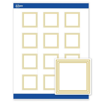Avery Printable Square Labels, Gold Multi-Lined Border, 2" x 2", Matte White Square Labels, Permanent, Laser/Inkjet, 120ct, Great for Product Labels