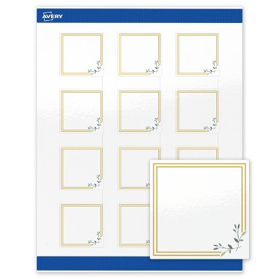 Avery 2" x 2" Labels, Gold Double Border with Florals, 120 ct, Glossy, Double Gold Border with Florals