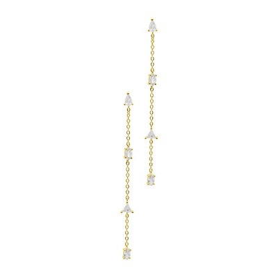 Adornia 14k Gold Plated Chain Sweeper Earrings with Mixed Shape Stones