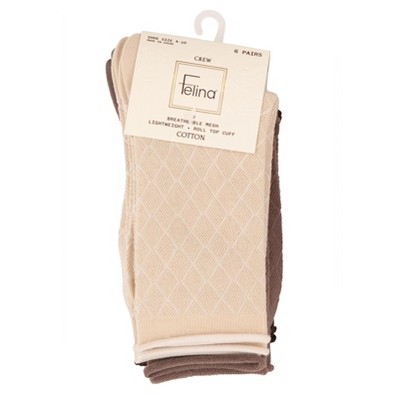 Texture Mesh Roll Up Top Crew Socks 6-Pack