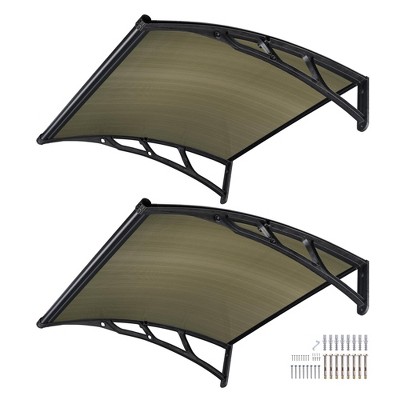 Yescom 2Pcs 40"X40" Window Patio Awning Door Canopy Polycarbonate Anti-UV50+ Cover Outdoor Rain Snow Protection Brown Brown Board & Black Bracket