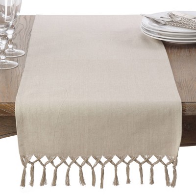 Saro Lifestyle 108"x16" Cotton Knotted Tassel Table Runner Light Brown