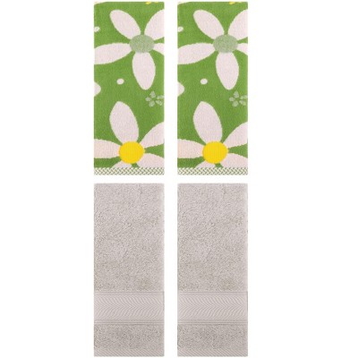 REGALWOVEN 4 Pcs Cute Floral Pattern Cotton Bathroom Soft Absorbent Hand Towel