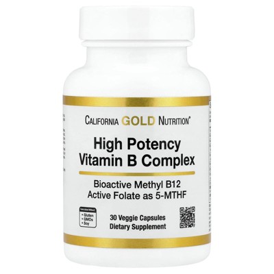 California Gold Nutrition High Potency Vitamin B Complex with Methyl Folate & Methyl B12, 30 Veggie Capsules