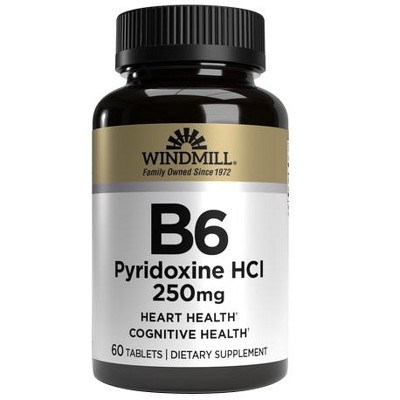 Windmill Vitamin B-6, 250 mg, Tablets,- 60 Ct