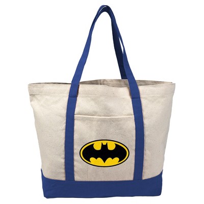 Batman Classic Bat Shield Logo Canvas Tote Bag With External Pocket, Reusable Shoulder Bag for Shopping, School, Beach, Royal