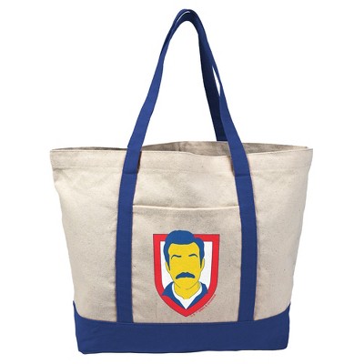 Ted Lasso Mustache Canvas Tote Bag With External Pocket, Reusable Shoulder Bag for Shopping, School, Beach, Royal