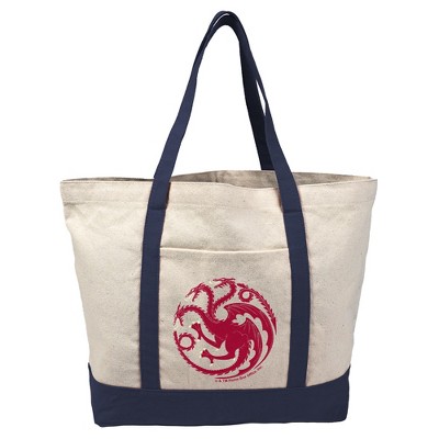 Game of Thrones Stannis Baratheon Sigil Canvas Tote Bag With External Pocket, Reusable Shoulder Bag for Shopping, School, Beach, Red