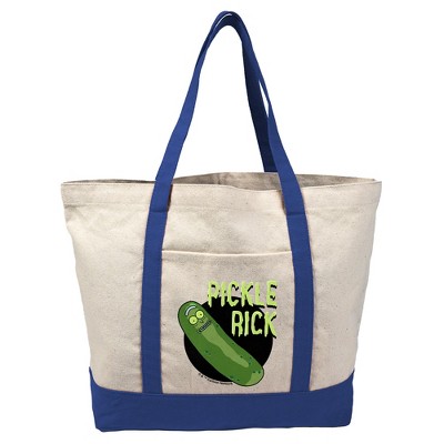 Rick and Morty Pickle Rick Canvas Tote Bag With External Pocket, Reusable Shoulder Bag for Shopping, School, Beach, Royal