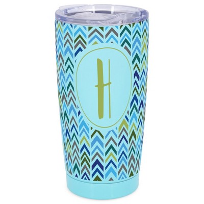 Elanze Designs H Monogram Herringbone Arrows Wrap-Around Design 20 Ounce Stainless Steel On-The-Go Coffee Mug, Thermal Travel Tumbler with Leak