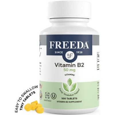 Freeda Vitamin B2 Riboflavin 50 mg – Vegan B2 Supplement for Energy & Nervous System Support – Gluten-Free – Made in USA – 100 Tablets