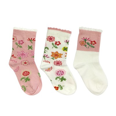 Wrapables Pink Flower Girl Socks for Baby (Set of 3)