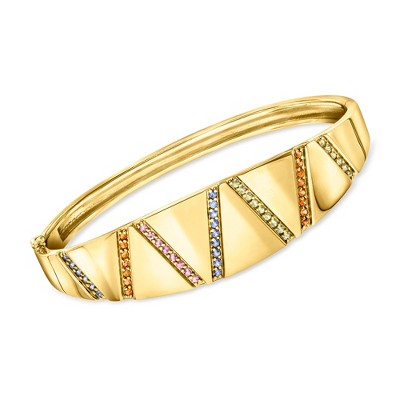 Bella Silver Sterling Silver, Polished Lined Pave CZ Bangle- Gold Plated - Gold