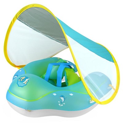 MOVSSOU Baby Pool Float with Canopy Baby Float Infant Swimming Float Sun Protection Skin-Friendly Blue