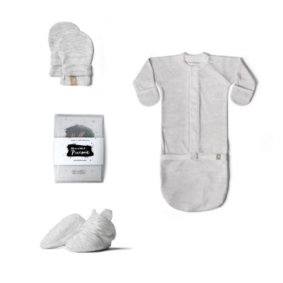 Layette by Monica + Andy Hospital Cuddle Box Blanket - Gray Stripes - 2pc: Organic Cotton, 32" x 32", Nautical Theme