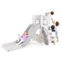 NAYSAYE Playground Slide Toddler Activity Center with Swing and Basketball Hoop for Indoor Outdoor Play, Gray and Ivory, 116.54"*64.96"*44.09"