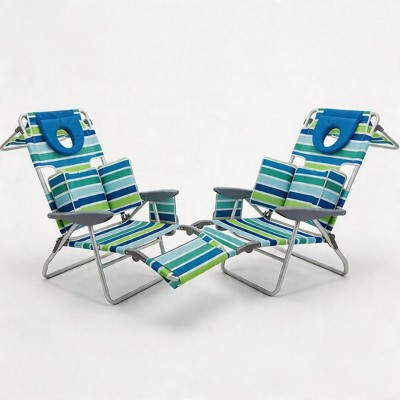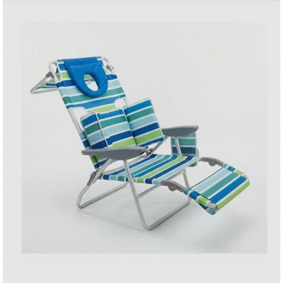 Ostrich 3N1 Outdoor Lightweight Aluminum 5-Position Reclining Beach Chair and On-Your-Back Outdoor Lounge 5-Position Beach Chair, Striped Blue