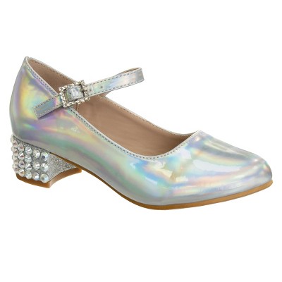 Badgley Mischka Girls Dress Heel Sandals. (Little Kids/ Big Kids). - Silver Holographic, 13