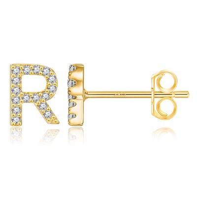 Turandoss 18K Gold Initial Stud Earrings for Women Girls - S925 Sterling Silver Post Diamond Flat Back Earring Hypoallergenic, Christmas Gifts for Her