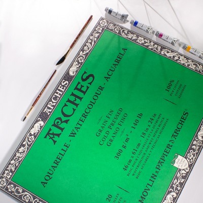 ARCHES® Aquarelle Watercolor Paper Block, Cold Press, Natural White, 140 lb (300 gsm), 20 Sheet, 18x24 in, 1 Count