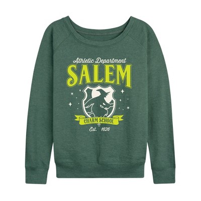 Women's - Instant Message - Salem Charm School Lightweight French Terry Wide Neck Long Sleeve Graphic Shirt