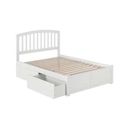 Full Size Platform Bed - Modern Design with 2 Underbed Drawers & Turbo Charger - White Finish