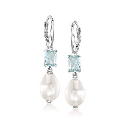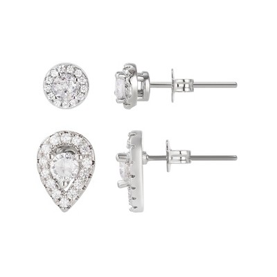 Guili Sterling Silver Rhodium Plated Clear Pear and Round Cubic Zirconia Halo with Flower Post Drop Earrings, a Delicate and Feminine Beauty