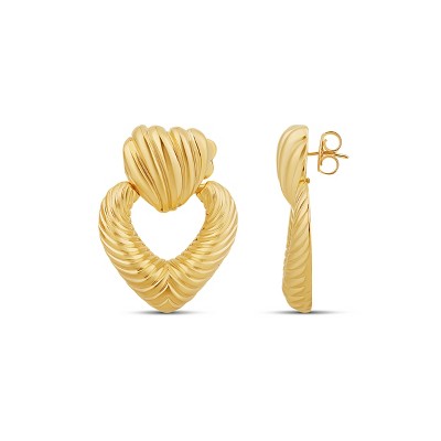 Textured Heart Statement Drop Earrings — 14K Gold Filled, Rhodium Plated, Day to Night